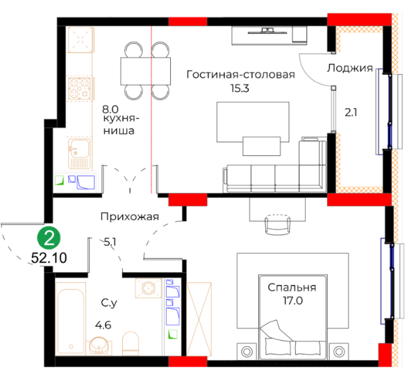 Например, "Студия 23.48 или "2 комн. кв. 38" Внимание! Значение м² выставляется автоматически.