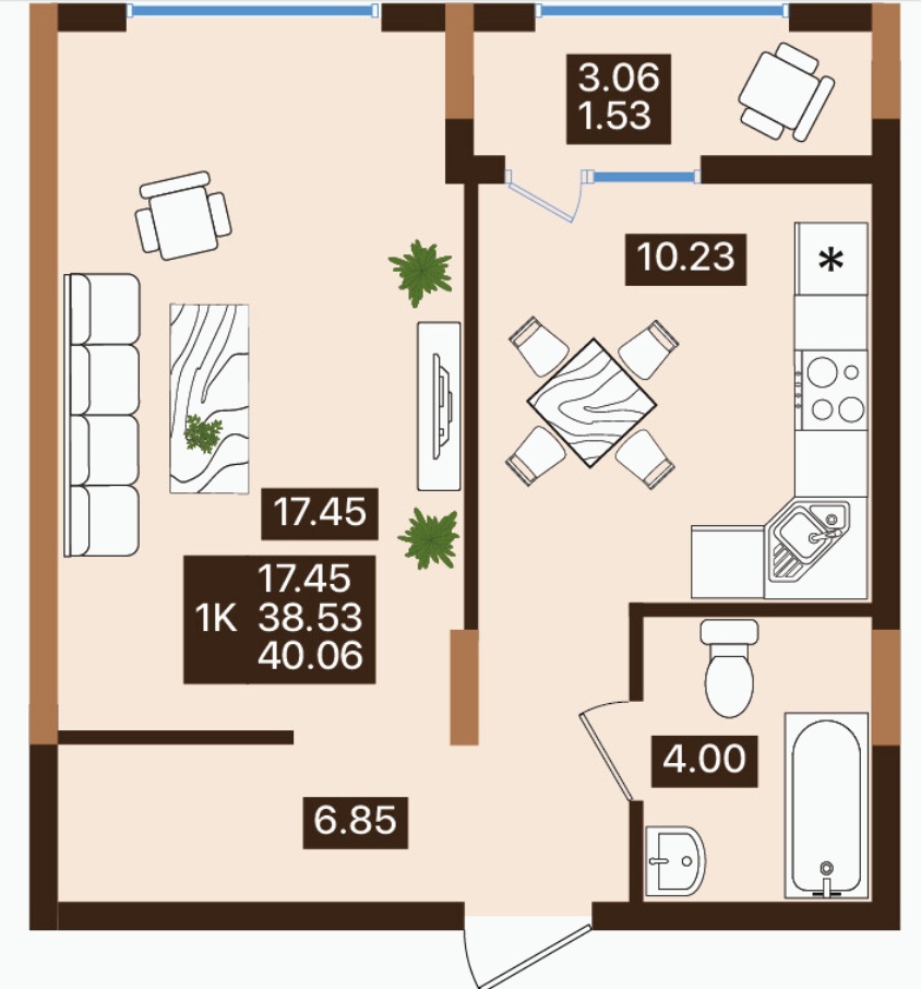 Например, "Студия 23.48 или "2 комн. кв. 38" Внимание! Значение м² выставляется автоматически.