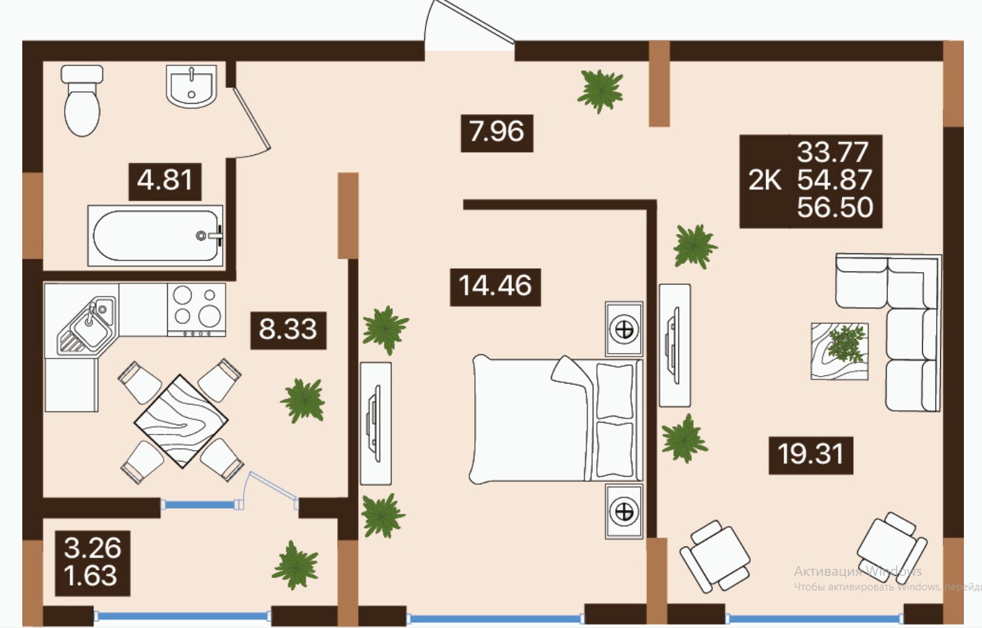 56.7 м²