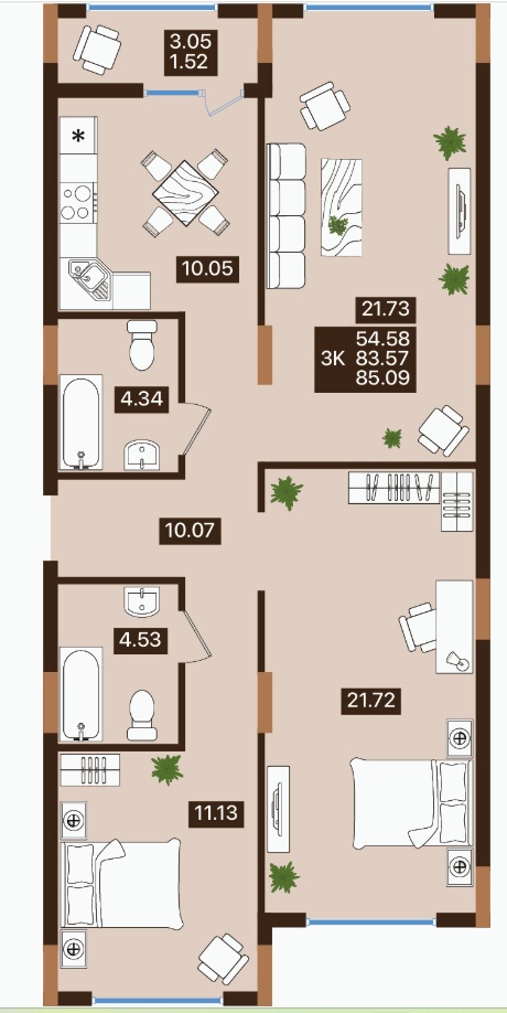 85.09 м²
