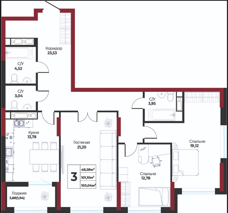 Например, "Студия 23.48 или "2 комн. кв. 38" Внимание! Значение м² выставляется автоматически.