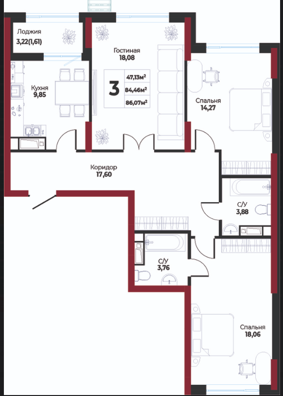 86.07 м²