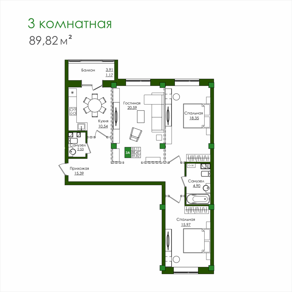 3 комн. кв.