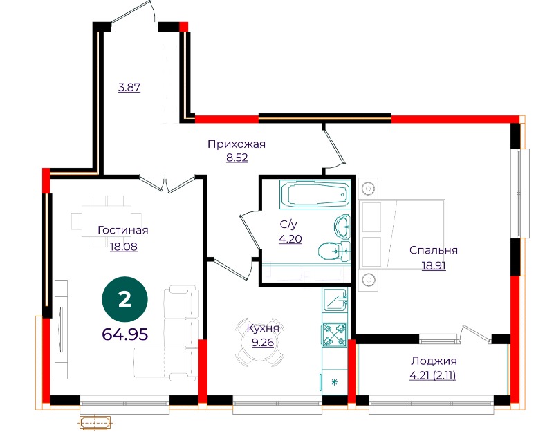 64.95 м²