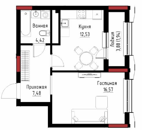 42.94 м²