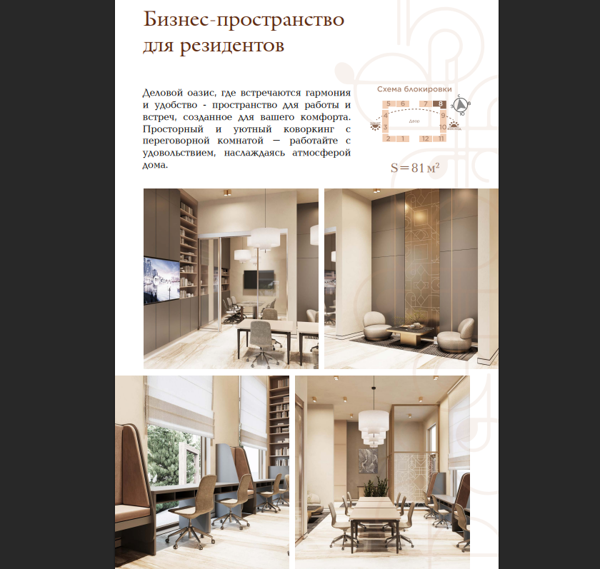 Роскошные портьеры, дизайнерские люстры, мягкий свет — с первых шагов вы почувствуете утонченную атмосферу. При входе вас встретит приветливый консьерж — он поможет со всеми вопросами от отправки бумаг до вызова машины. В мягкой зоне ожидания можно комфортно расположиться, чтобы подождать водителя или провести деловую встречу